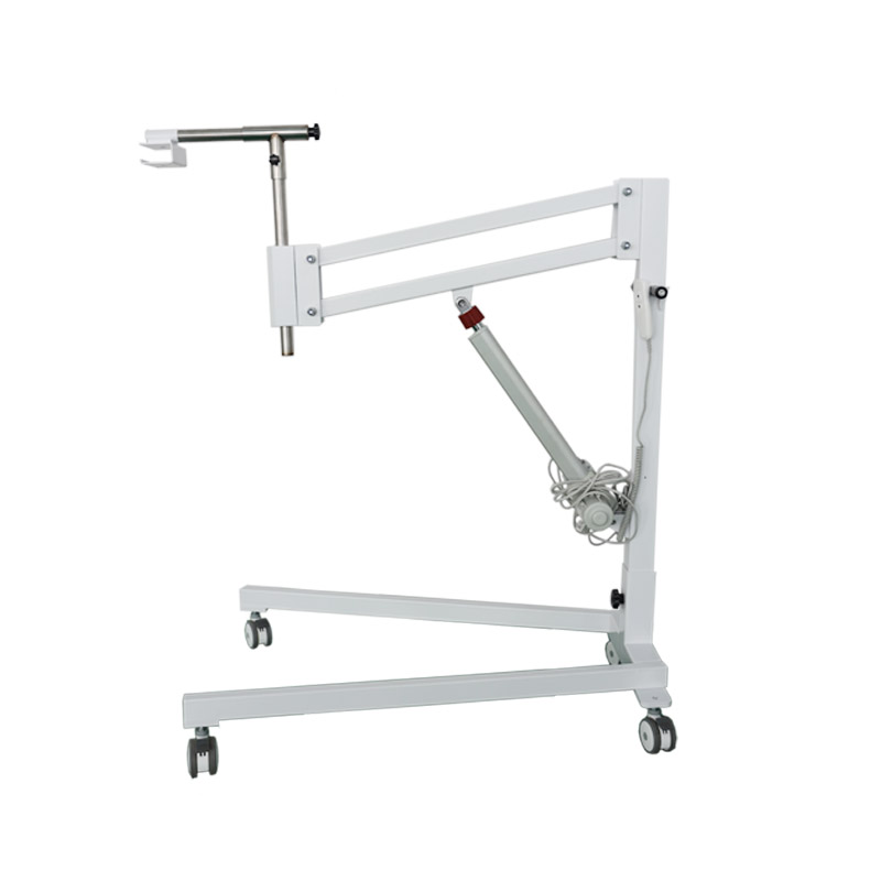 1. Electric tripod, which is designed with electric push rod and remote control handle. This rack has the characteristics of high safety and convenient use, because the patient only needs to lie on the table, and the medical staff can use the handle to control the rack for telescopic operation. In addition, the electric tripod can also be equipped with an optional power supply, which can be used for a period of time after charging.